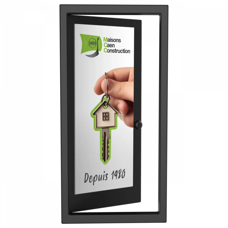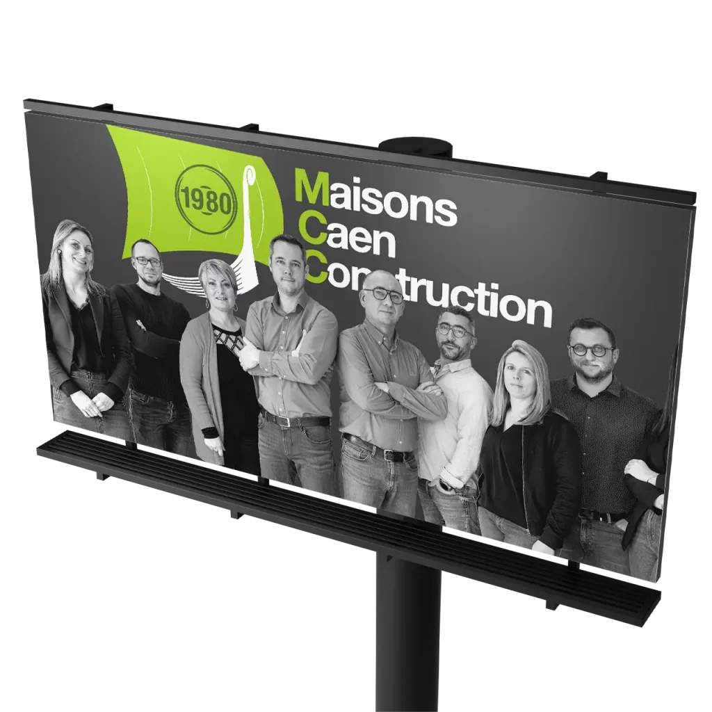 Une maison en construction ou en fin de chantier, c’est une opportunité de visibilité. Pour Maisons Caen Construction, nous avons conçu des panneaux de portes qui protègent tout en offrant un espace de communication supplémentaire.