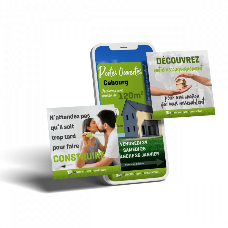 Pour Maisons Caen Construction, nous avons mis en place une stratégie de contenu ciblée, avec des visuels et des publications pensées pour capter l’attention et valoriser leur savoir-faire.